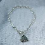 Уловете текстурата на пръстов отпечатък върху талисман от чисто сребро, след което го покажете върху една от нашите италиански верижни гривни belcher. Ако вече имате пръстов отпечатък с мастило, просто го качете с поръчката си. Ако не, добавете комплект за пръстови отпечатъци с мастило. Изберете от различни форми на талисман, като същевременно имате опция за гравиране на име и възраст на гърба. Всичко включено в цената!