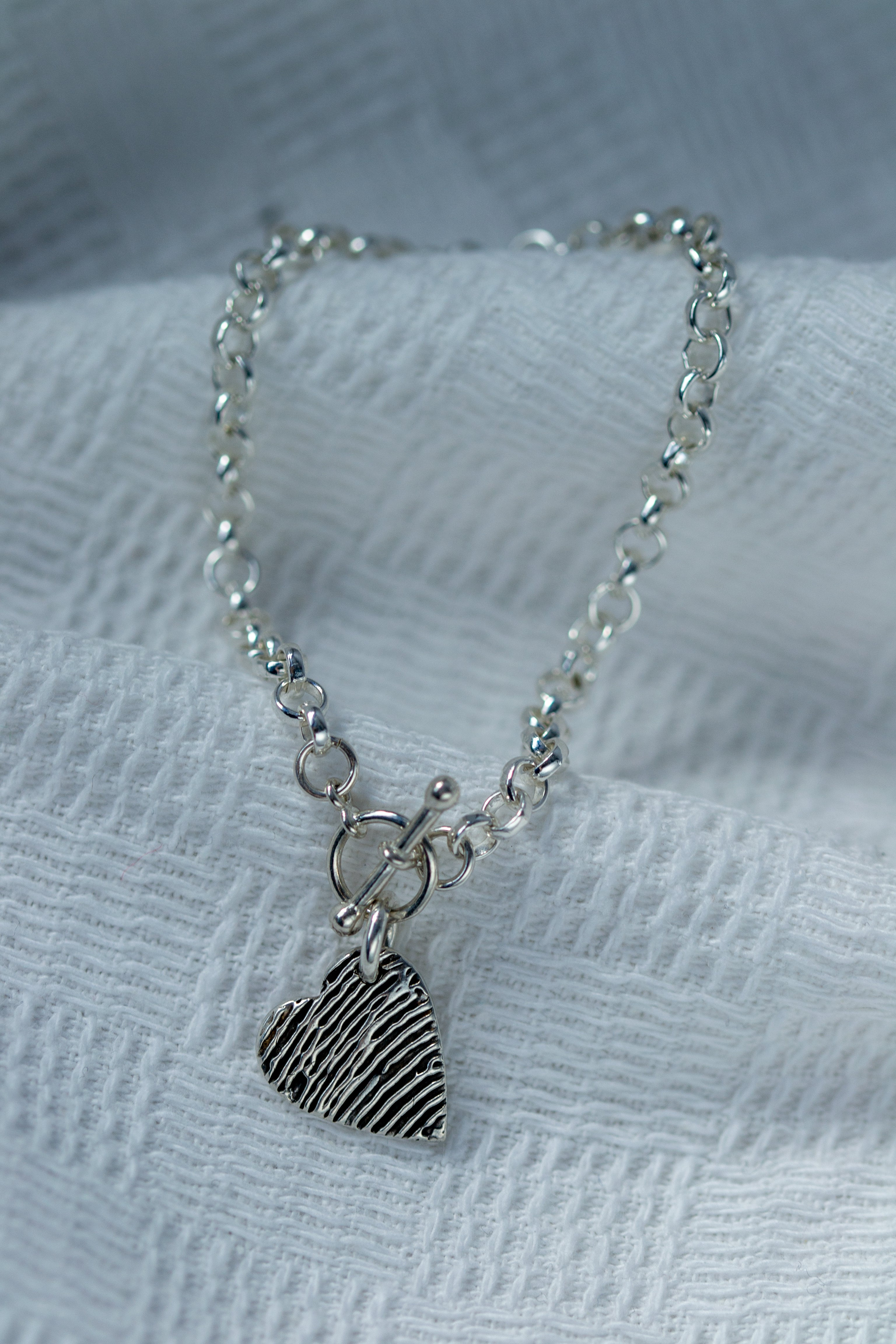 Yes, all our jewellery pieces, including personalised items like fingerprint jewellery, are crafted from high-quality sterling silver. This ensures a beautiful, durable finish that maintains its shine and quality over time.