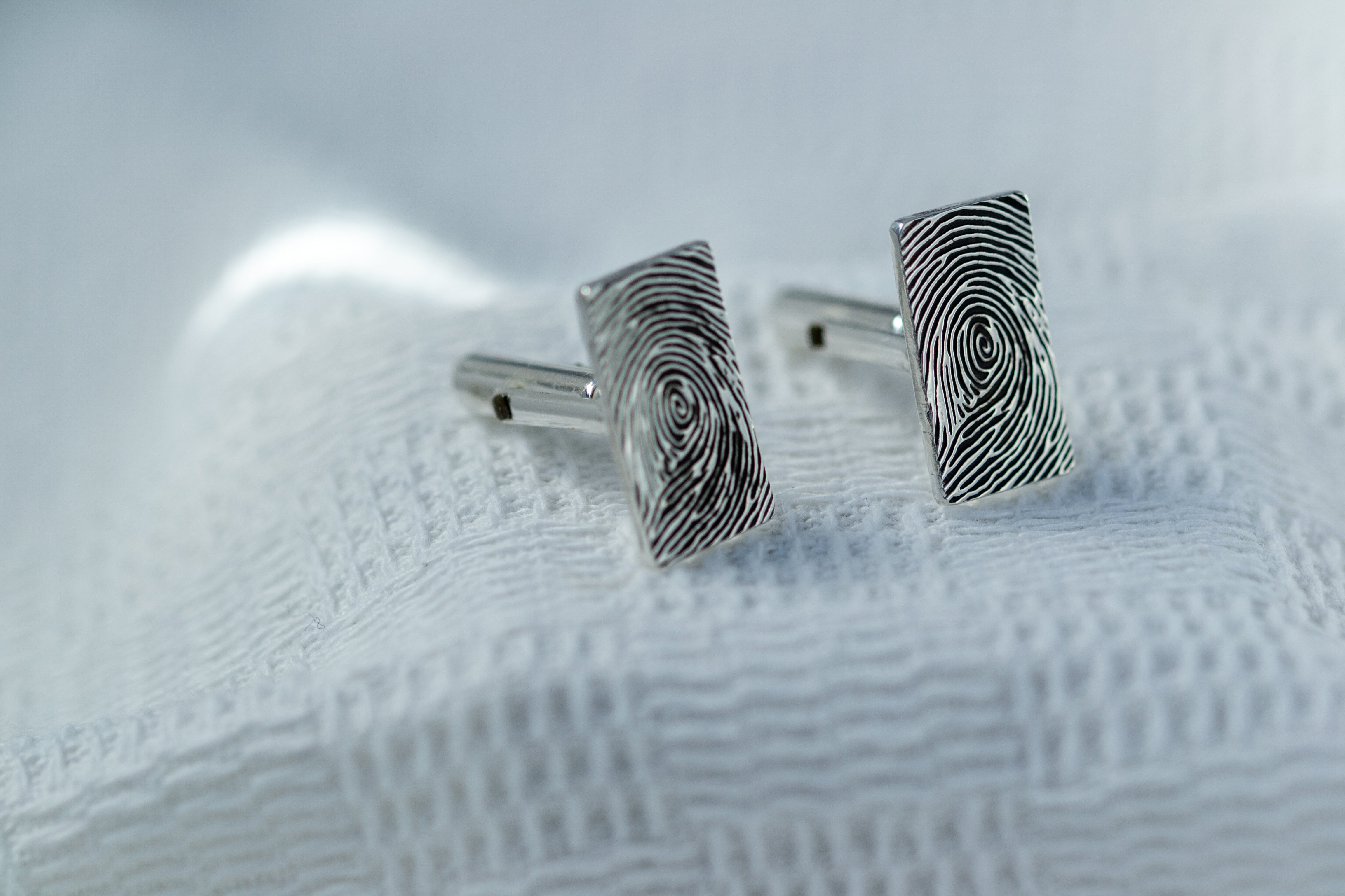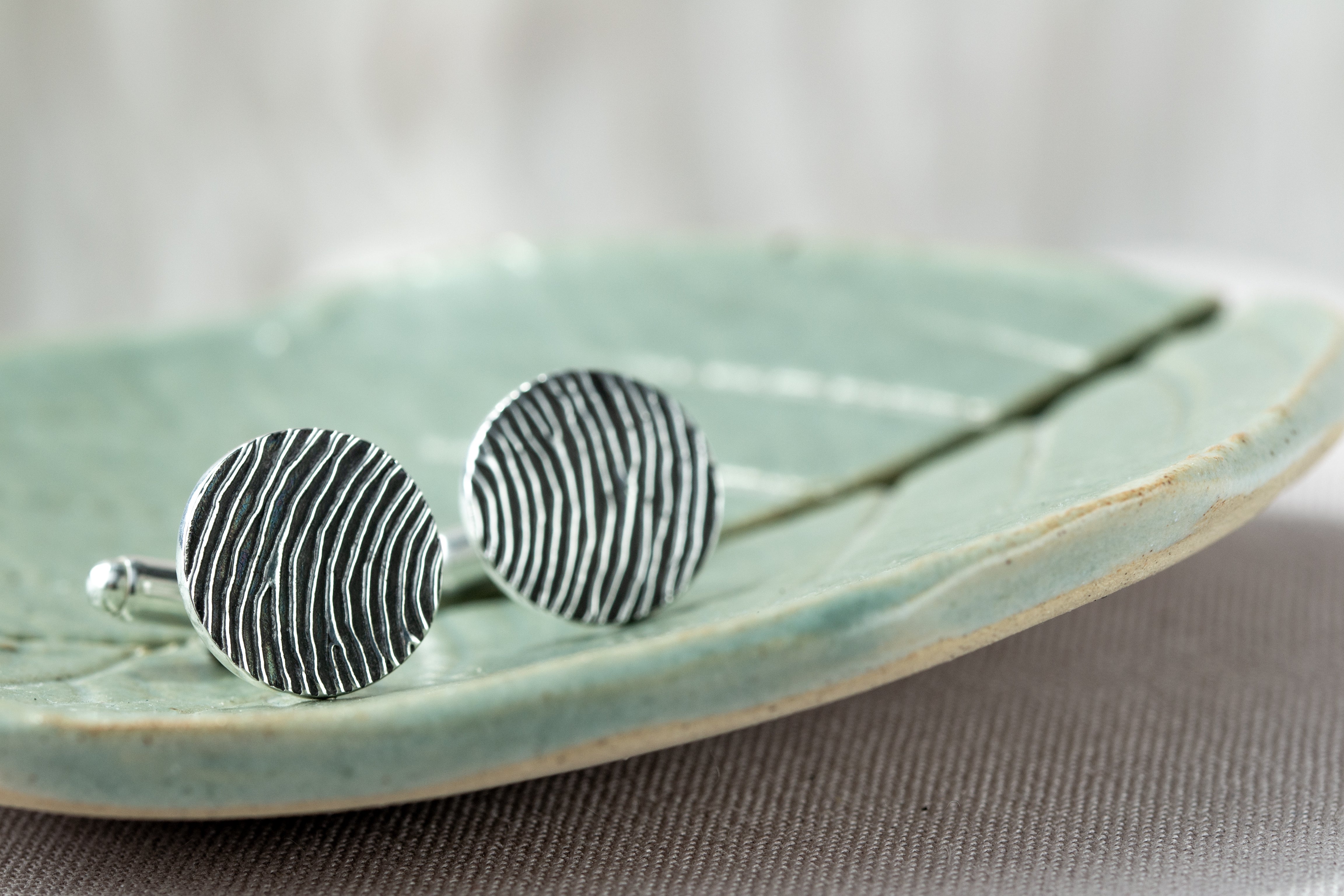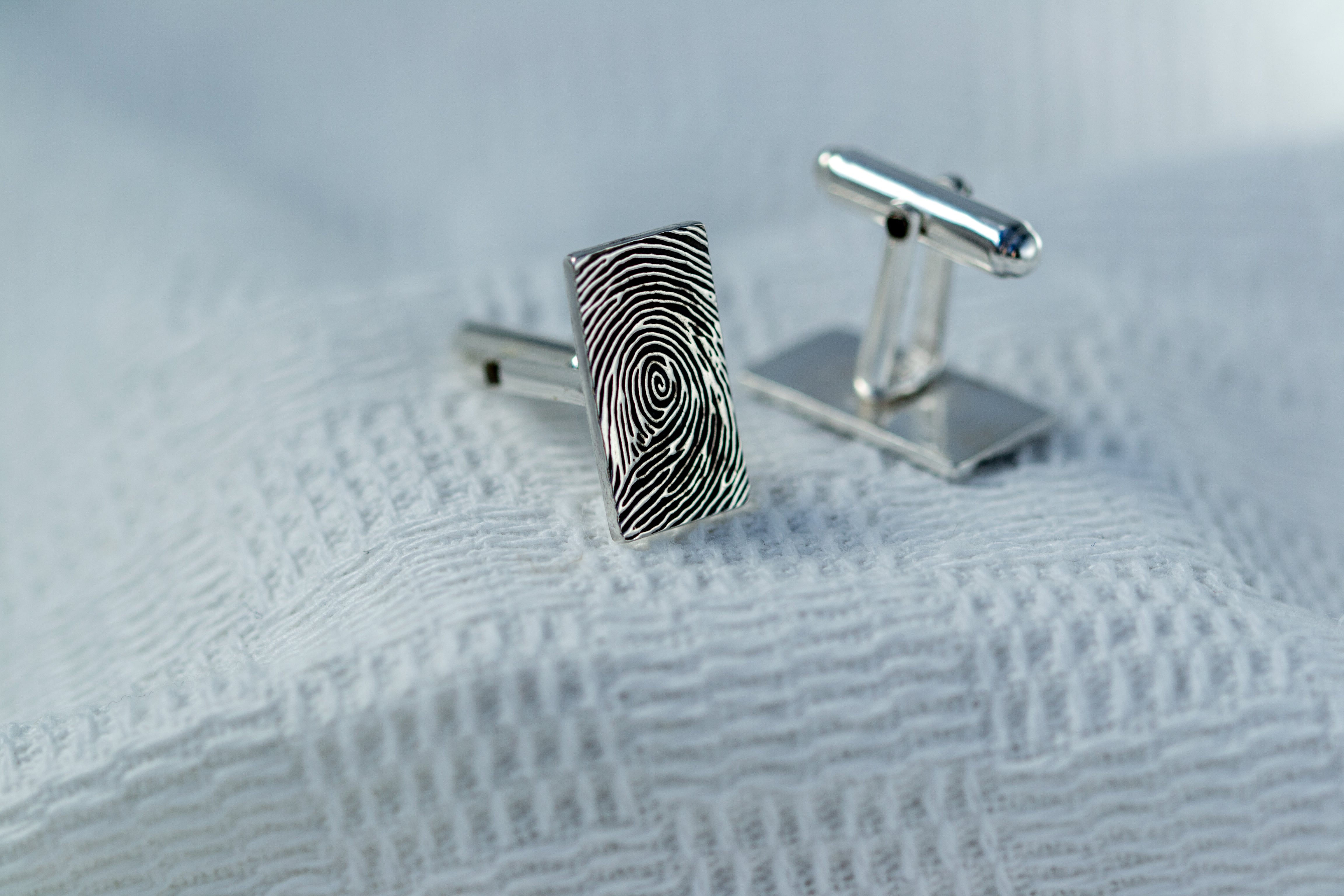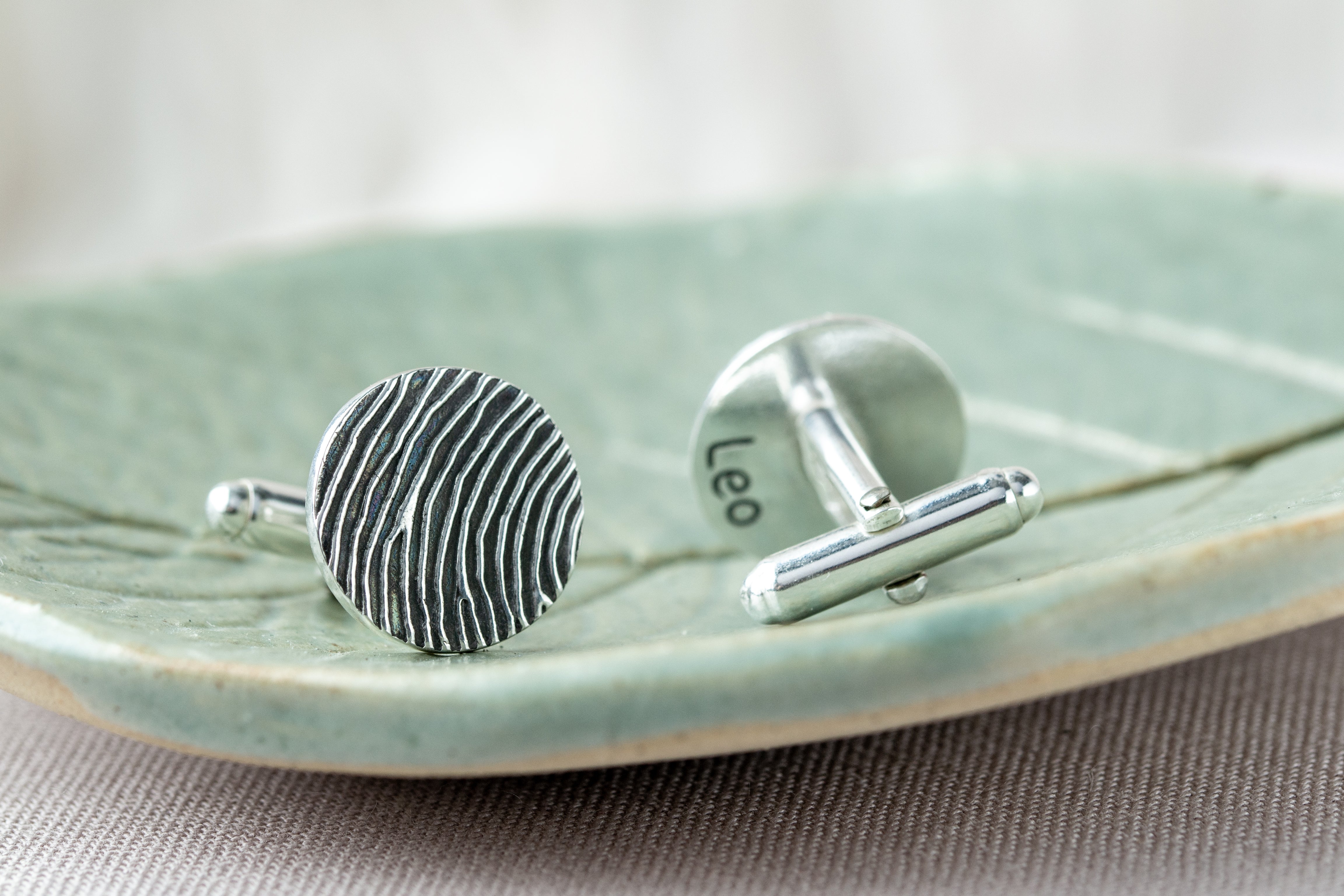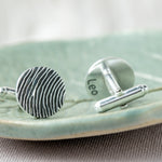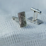 Honor the memory of a loved one with our cufflinks, featuring their fingerprint on the front and a personalized engraving on the back. These sterling silver cufflinks serve as a meaningful keepsake, preserving the unique texture of someone special. Upload an existing ink print with your order, or request an ink kit to send the print later. Thoughtfully designed, these memorial cufflinks are a timeless and personal way to keep a loved one’s memory close.
