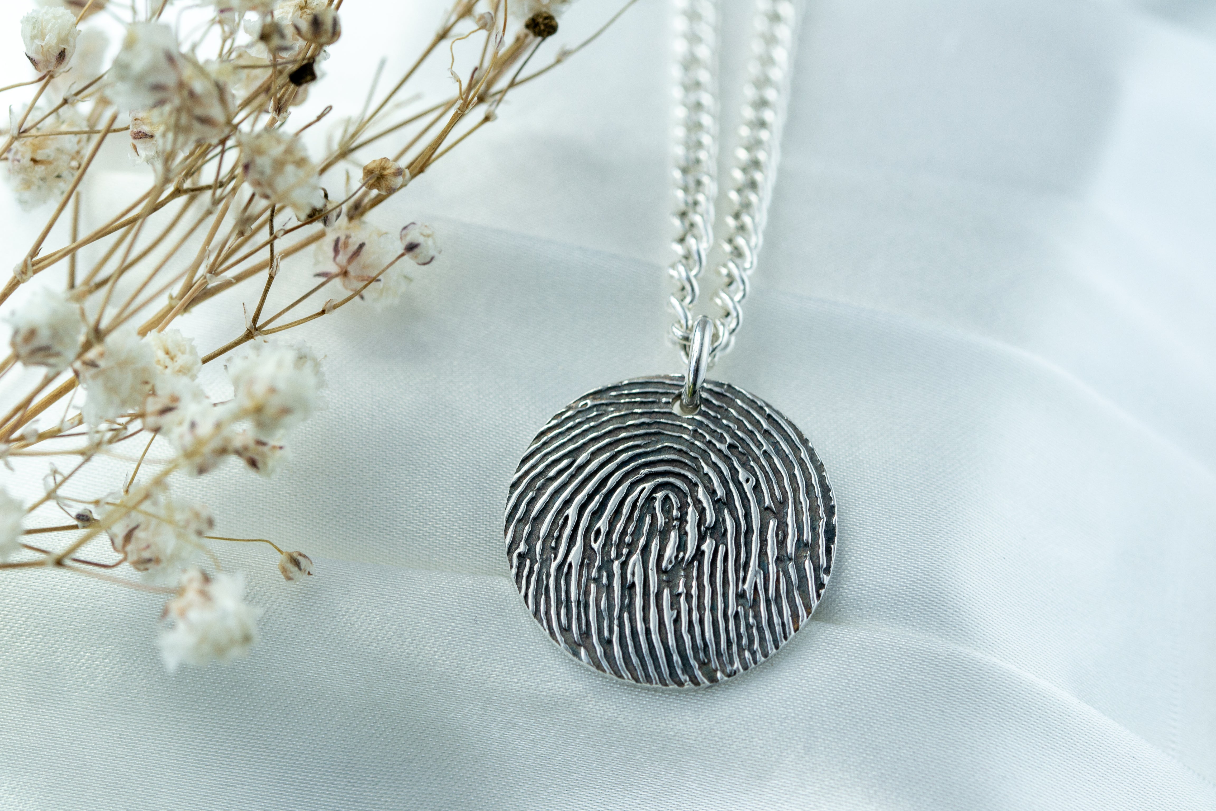 Yes, all our jewellery pieces, including personalised items like fingerprint jewellery, are crafted from high-quality sterling silver. This ensures a beautiful, durable finish that maintains its shine and quality over time.