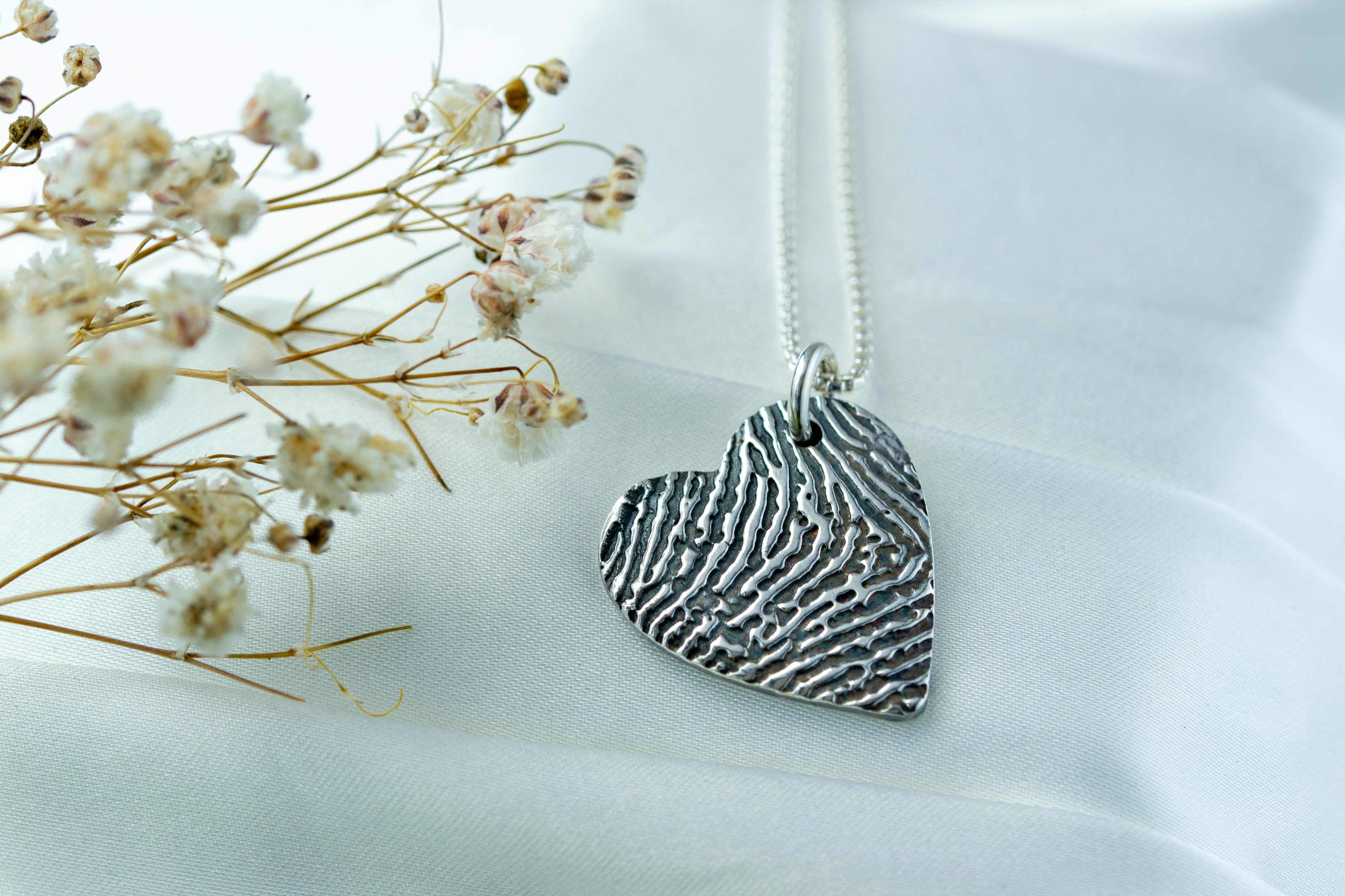 Yes, all our jewellery pieces, including personalised items like fingerprint jewellery, are crafted from high-quality sterling silver. This ensures a beautiful, durable finish that maintains its shine and quality over time.