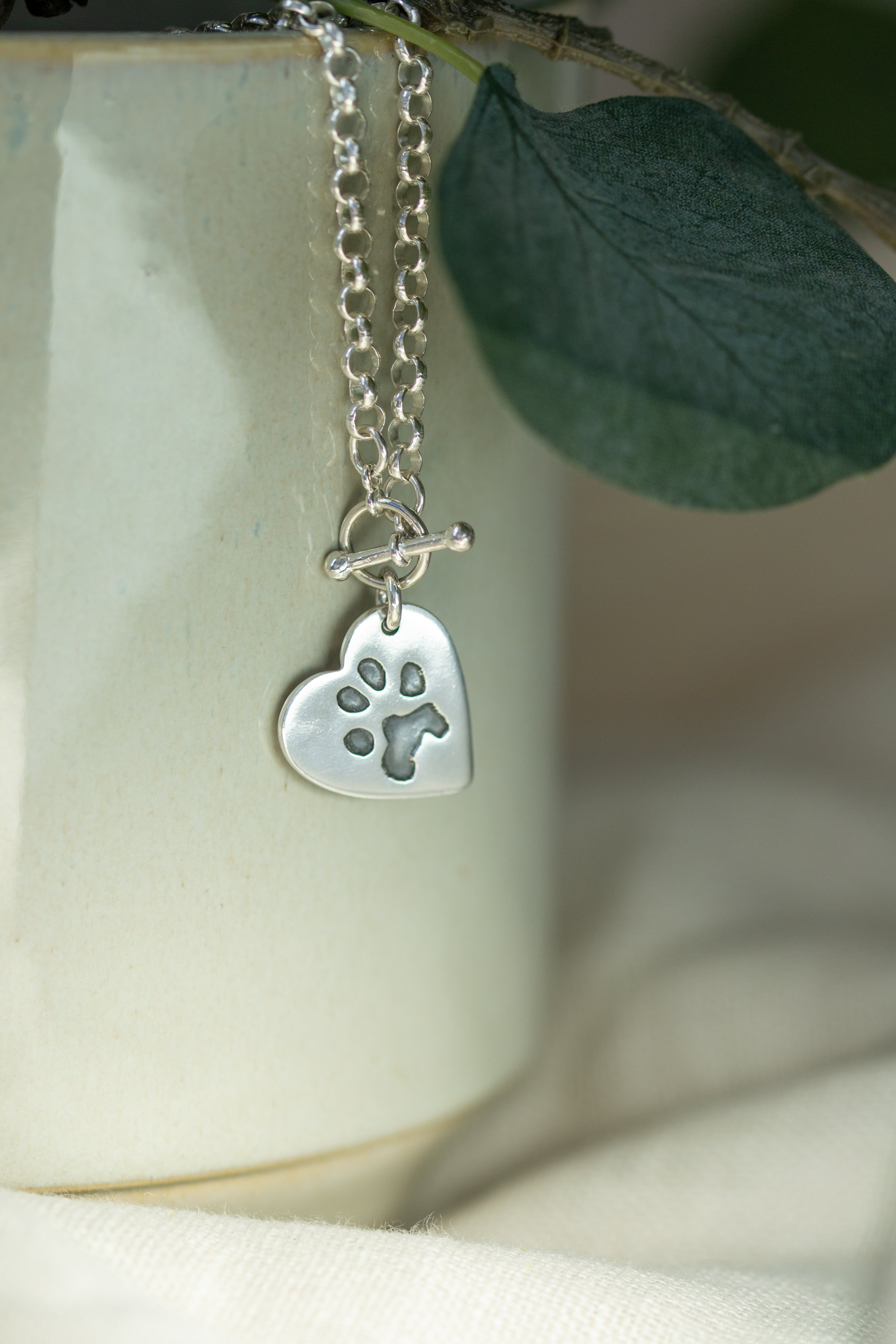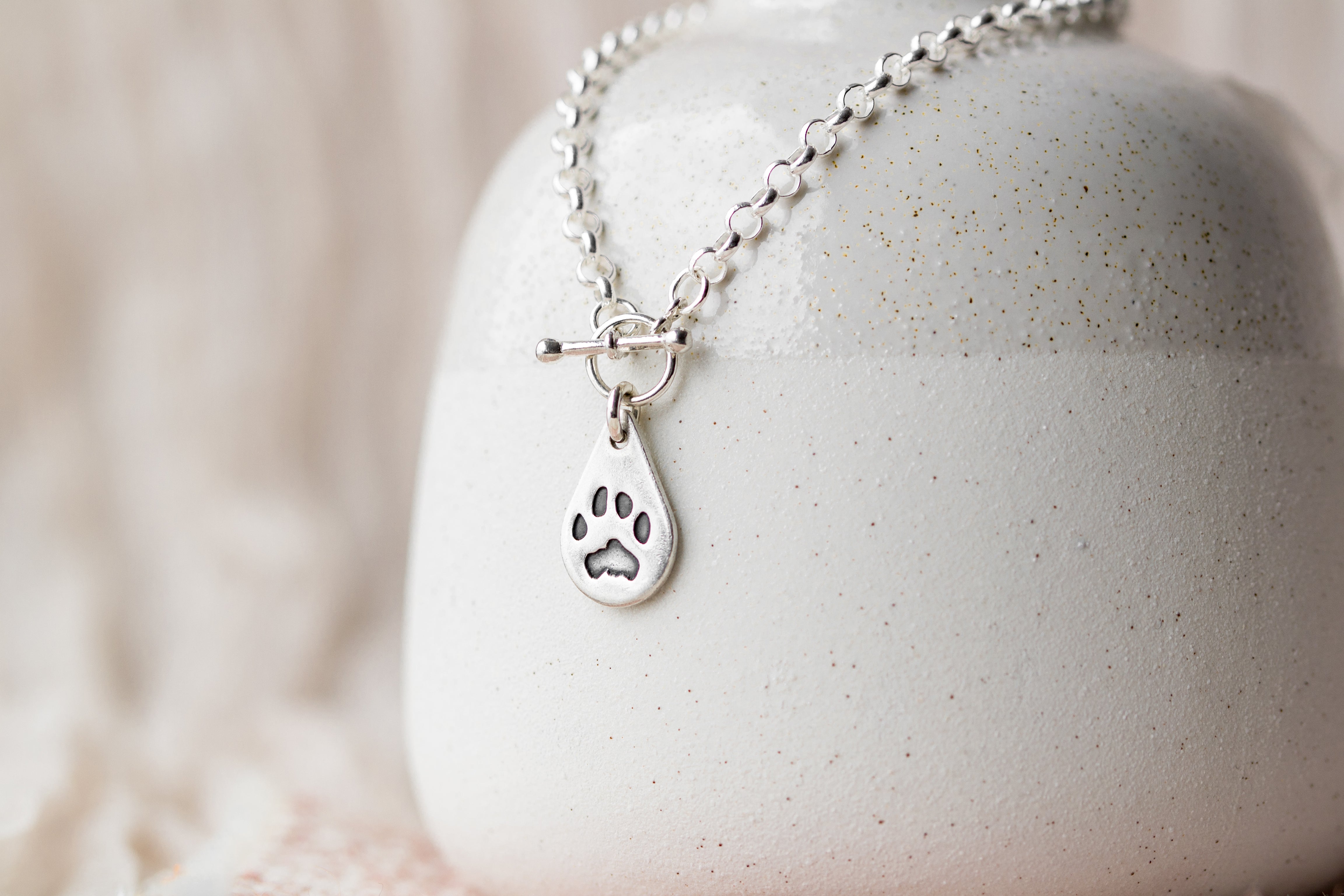 This belcher chain paw print necklace features our chunkiest chain, crafted from beautifully finished sterling silver links and secured with a gorgeous toggle clasp. This stunning piece of paw print jewellery makes a truly personal keepsake for any occasion or is perfect for celebrating the furriest member of your family!