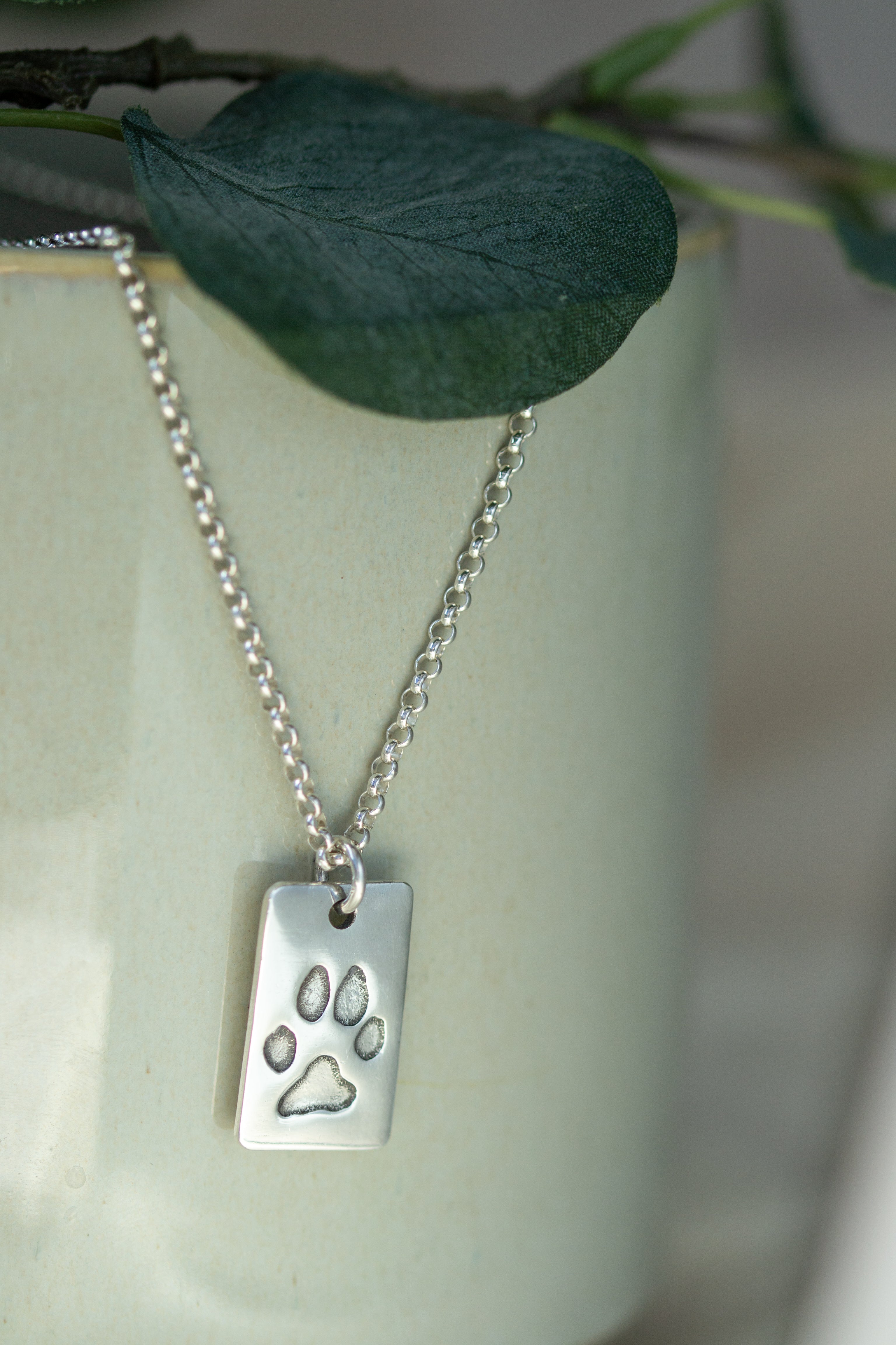 Paw print necklace - fine belcher chain