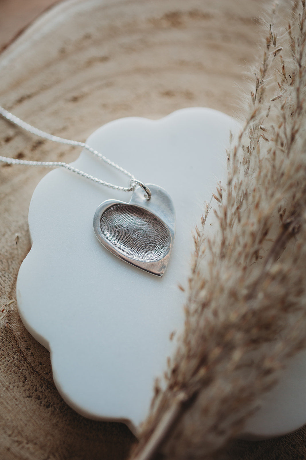Our most popular necklace for showcasing your unique fingerprint jewellery, featuring your love one's actual fingerprint captured in sterling silver—perfect for adults too! Visit a local jeweller for an impression or use our included moulding kit to create the perfect pendant at home. Choose from various shapes, with a hand-engraved name and age included. Complete your piece with one of our Italian-made, sterling silver link chains, available in three sizes, and optionally add a birthstone for a truly personalised touch.