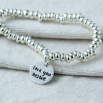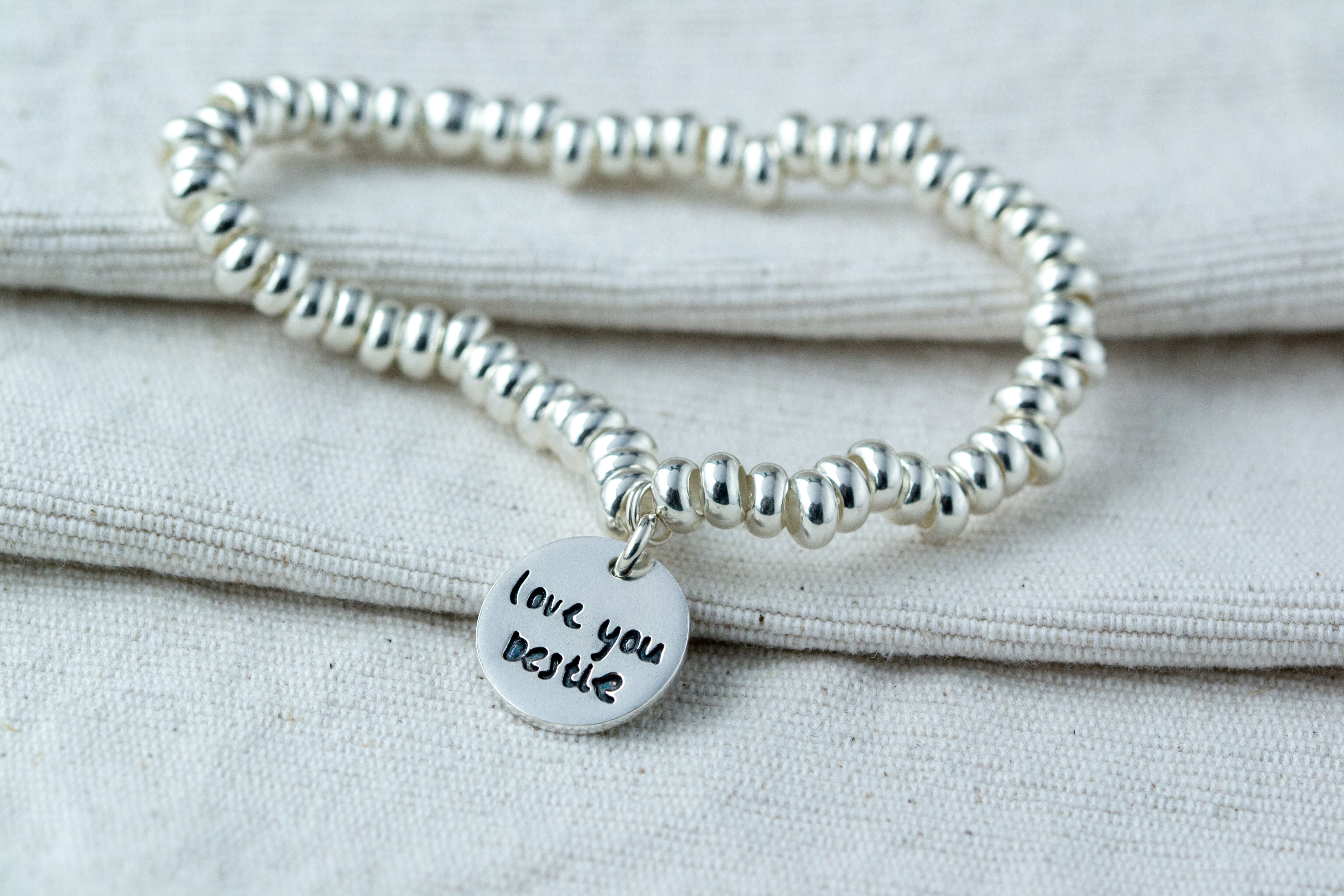 This stunning, chunky bracelet is the perfect way to keep those mini messages close at all times. An excellent choice if you're looking to order multiple pieces of personalised jewellery or to complement an existing item. Specially commissioned by Smallprint from Italy, this bracelet is designed for the discerning buyer. The sterling silver rings are bound together by a flexible nylon cord, making it easy to slip on and off any wrist size. A truly unique piece of personalised jewellery that’s as versatile as it is stylish!