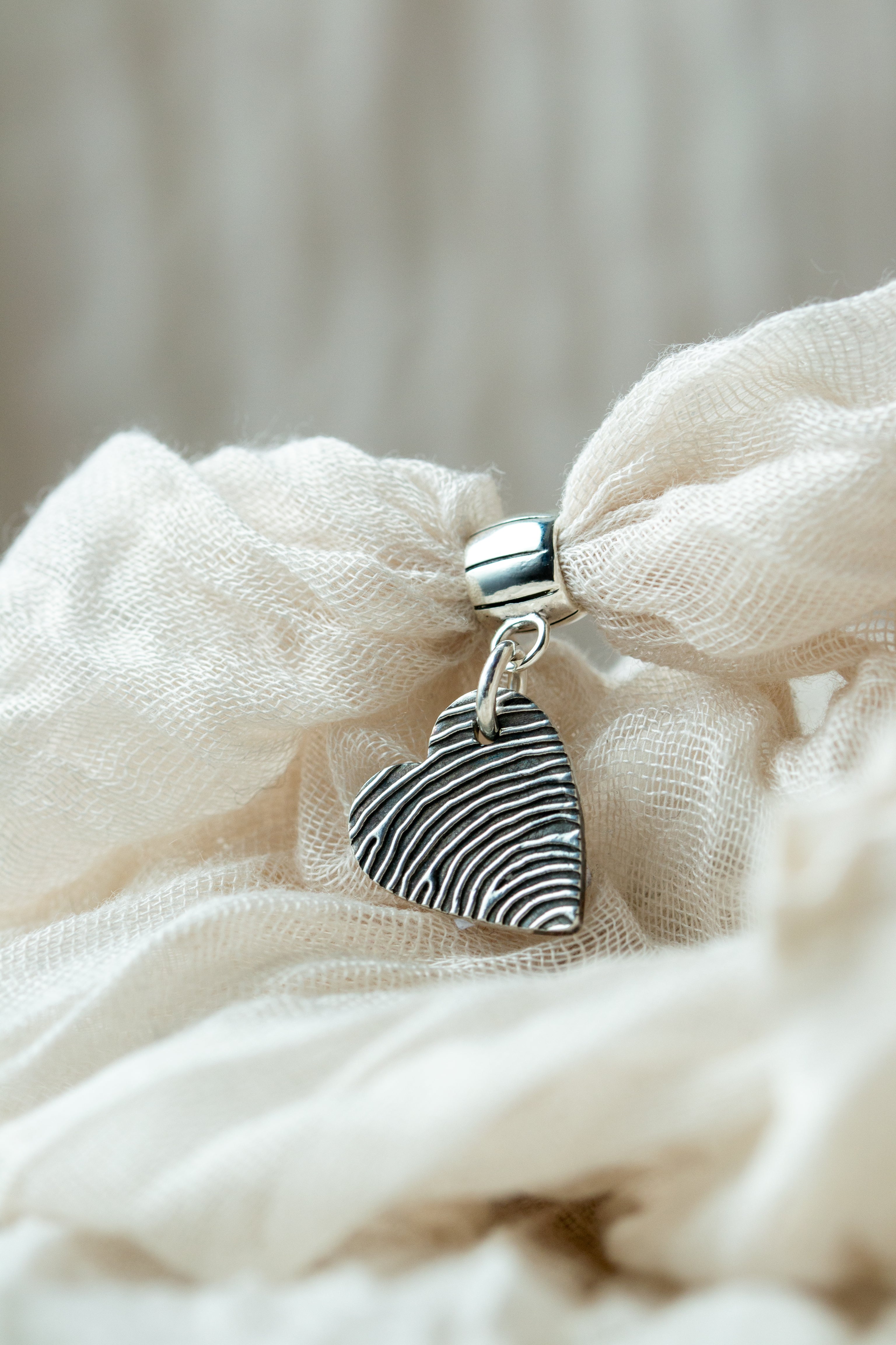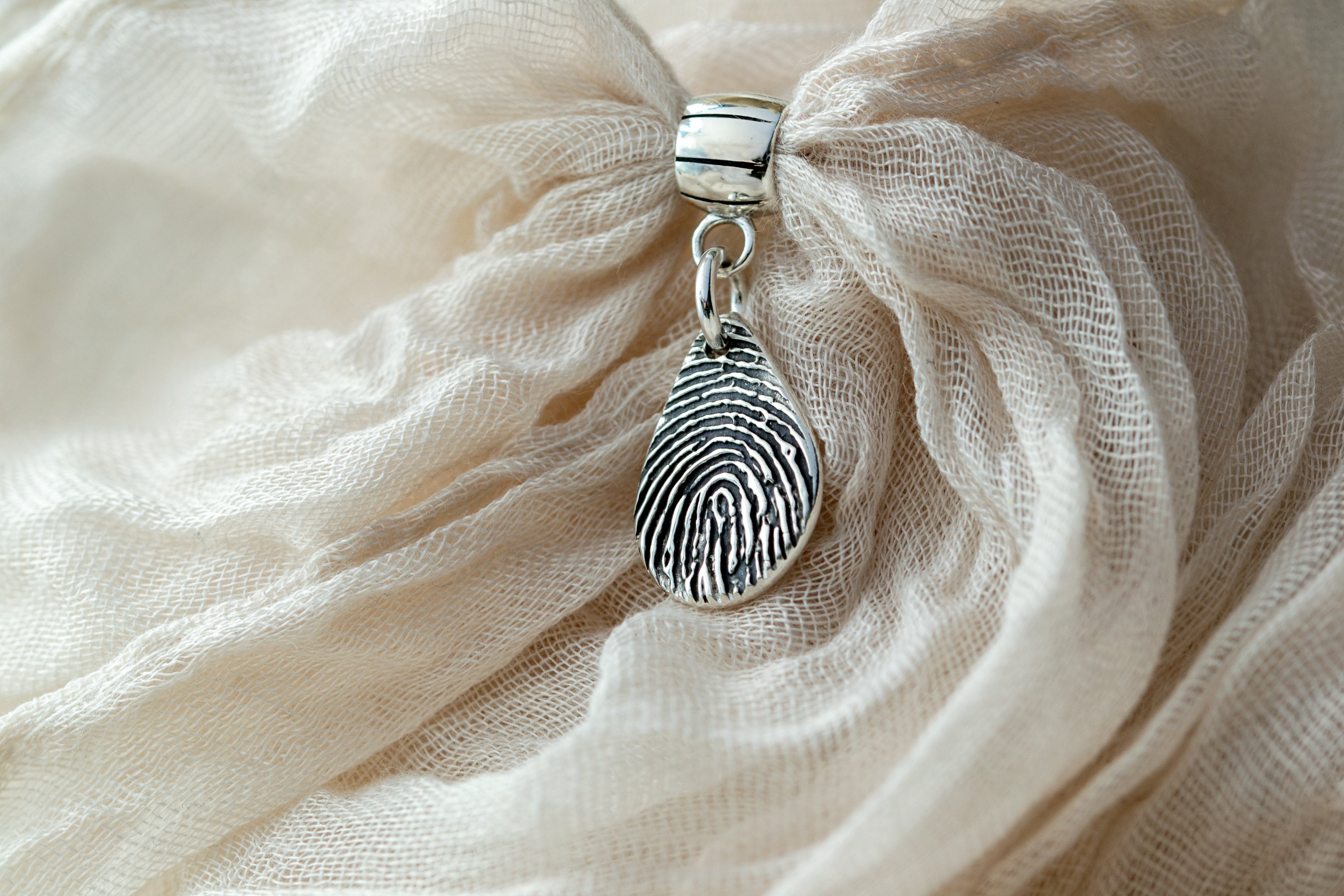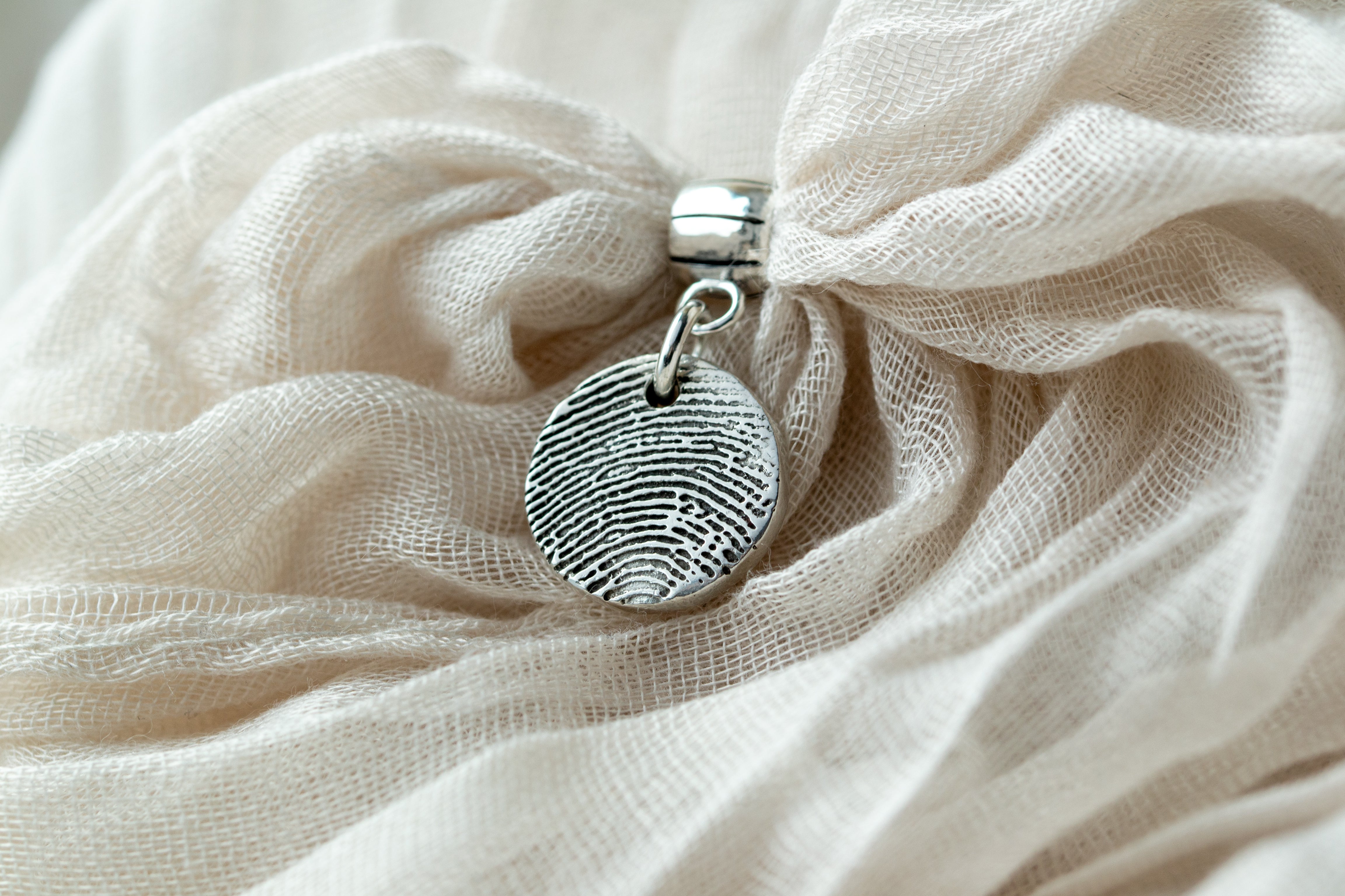 Got room for one more charm on your Pandora bracelet? Make it truly personal with our fingerprint jewellery charm. Capture the unique texture of a fingerprint on a sterling silver charm, complete with a Pandora-compatible carrier. If you already have an ink fingerprint, simply upload it with your order. If not, add an ink fingerprint kit to create your keepsake. Choose from a variety of charm shapes, and enjoy the option of having a name and age engraved on the back, all included in the price! This charm is a meaningful addition to your collection.