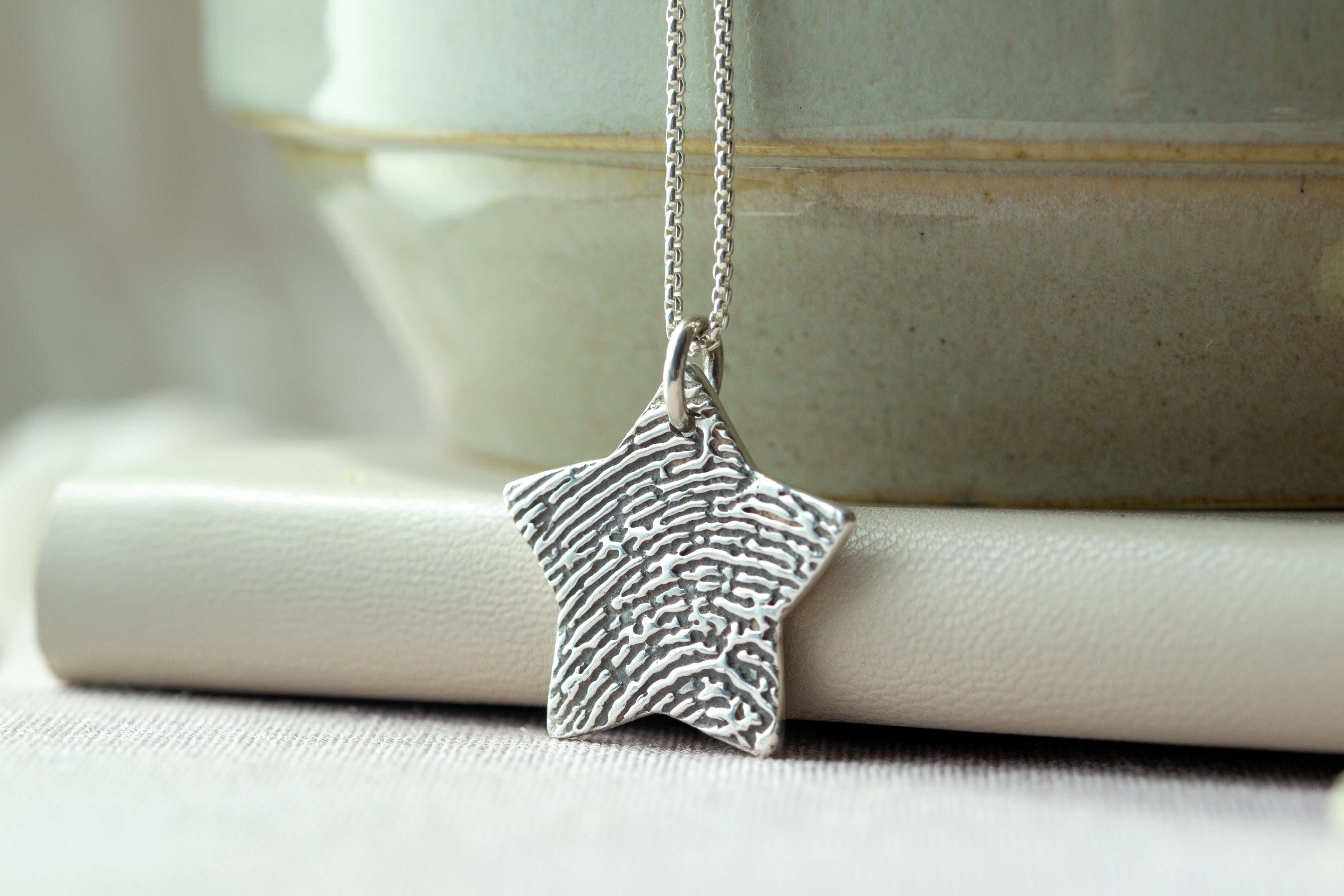Enhance your necklace with our Italian-made sterling silver fine link chains, available in three sizes. Perfect for showcasing a unique keepsake, these delicate chains are crafted to complement our fingerprint jewellery. Feel the distinct texture of a real fingerprint, intricately detailed on a sterling silver pendant, ideal for preserving the print of a child or a cherished adult. Keep your loved ones close with this personalised piece. You can easily upload an existing ink print with your order, or opt for our ink print kit to send it later. Choose from various pendant shapes, each offering the option to be engraved with a name and age, adding an extra layer of personalization to your fingerprint jewellery.