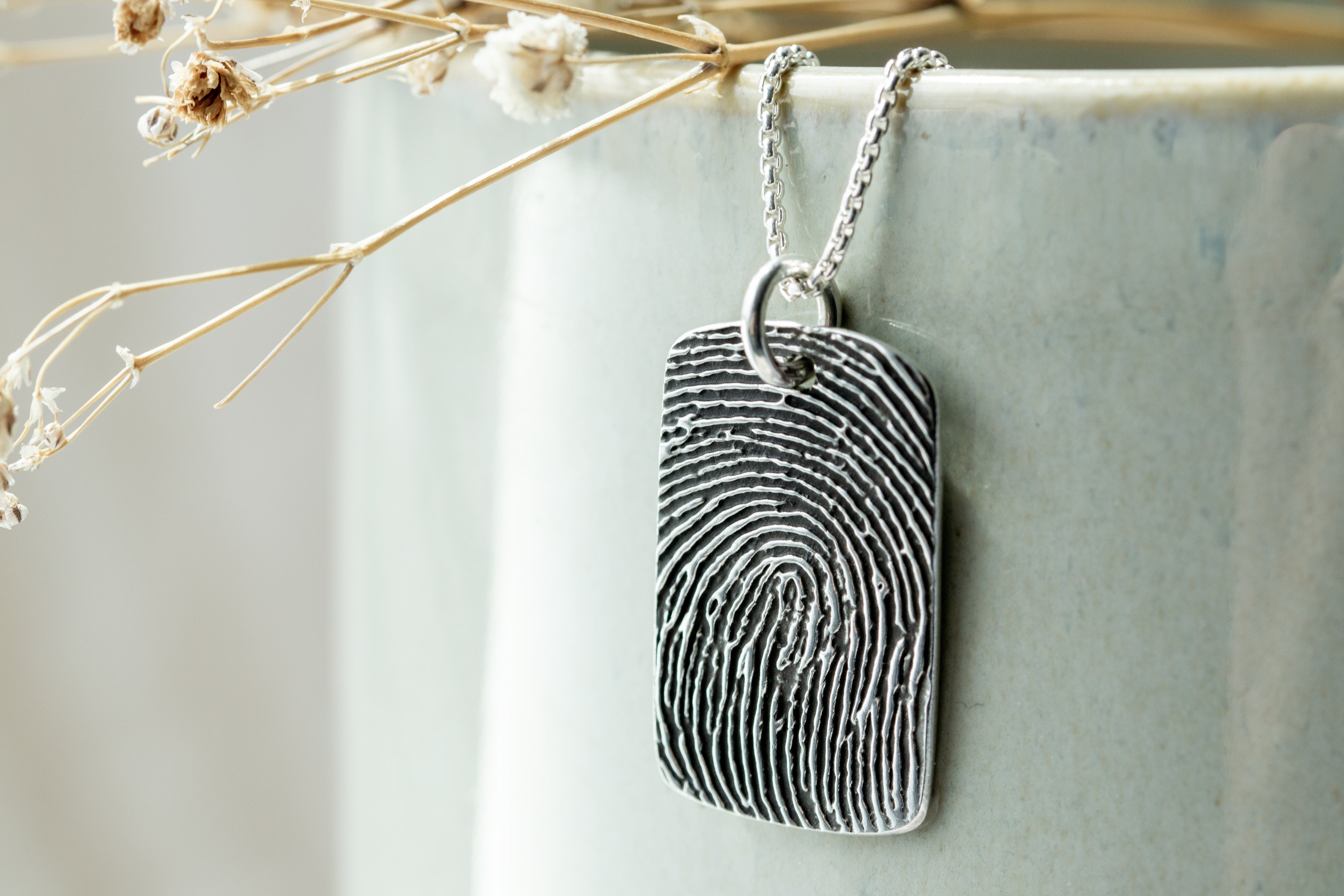 "Tender Touch" Fingerprint Necklace - Fine Silver Link