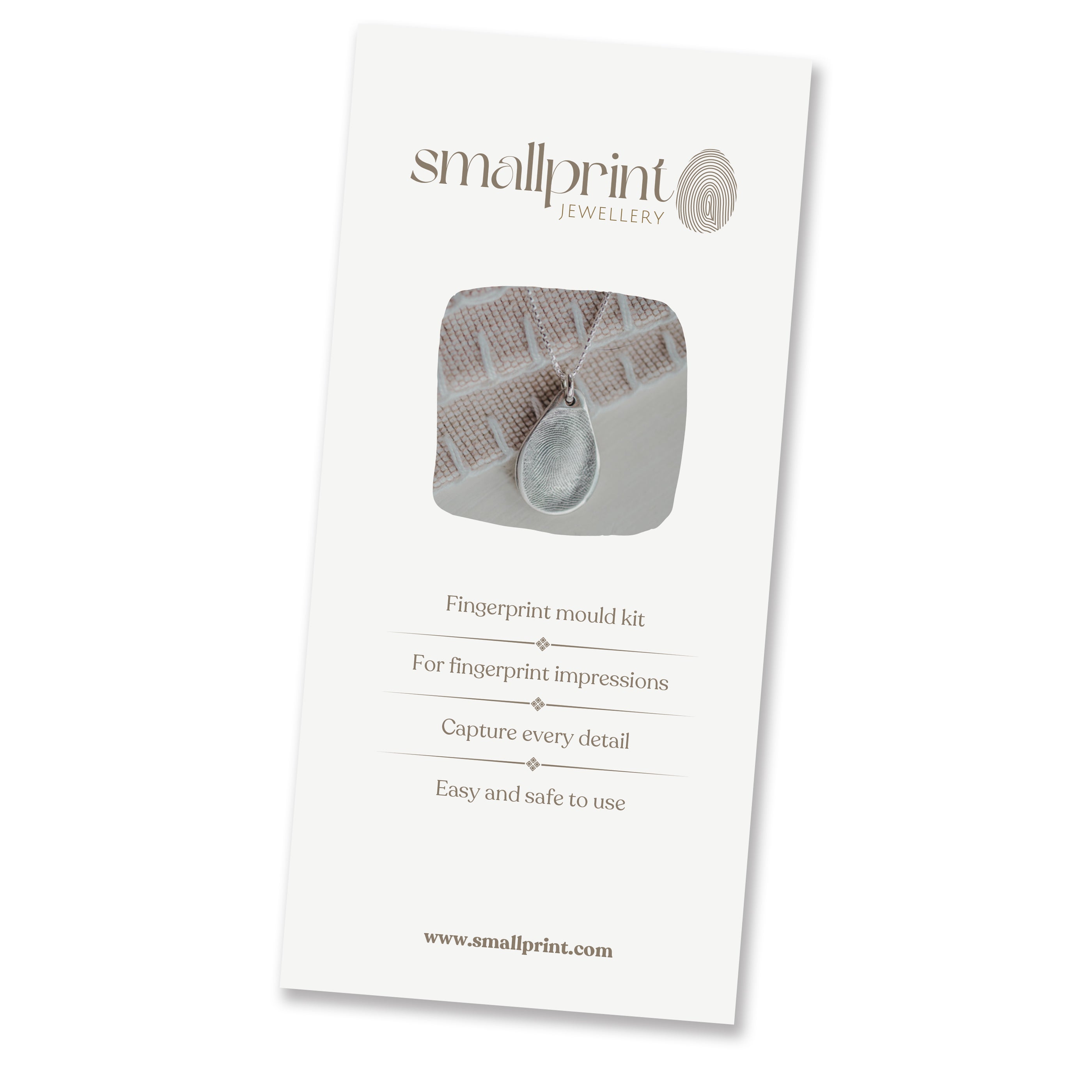 This Fingerprint Kit allows fingerprints to be taken in a special moulding compound, capturing not only the detail of the print, but the shape and depth as well. This can be used to create handcrafted items of jewellery showcasing the whole fingerprint.